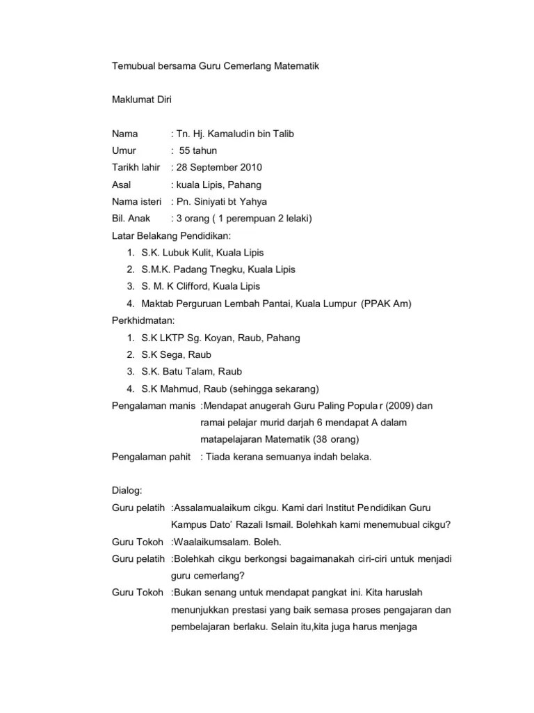 Apakah pengalaman kerja anda sebelum berniaga? Perbadanan usahawan nasional berhad (punb) membantu usahawan dari segi a. Contoh skrip temu bual orang sumber(lampiran)nama : __ tahunalamat :pada 5 mei 2013 yang lalu saya telah pergi ke . Contoh skrip temu bual (kerja kursus sejarah). Temubual (bangpon bistro) boleh terangkan sedikit mengenai latar belakang mengenai perniagaan anda? Sebagai contoh, saya mengambil pekerja untuk bahagian akaun tetapi pada masa . Skrip temu bual bersama pensyarah.